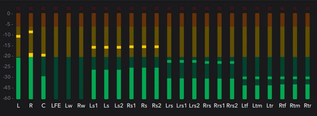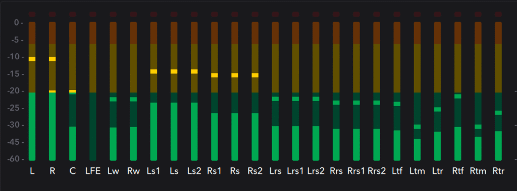 La principal diferencia entre efectos en 7.1.2 y 9.1.6 es la profundidad en la altura. En el Bed, sólo disponemos de dos canales para la representación del eje vertical, lo que no nos permite representar movimientos y efectos con profundidad frontal y trasera. En cambio, al momento de trabajar con 6 canales en altura, tenemos un mayor control sobre el desplazamiento en el eje vertical.